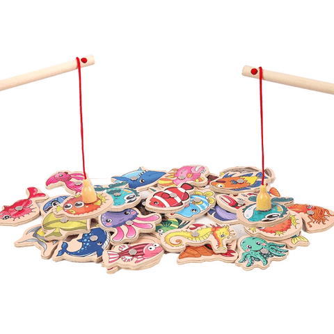 Cool toy! The fish are beautiful, made of wood with a magnet on top. Definitely recommend buying the product, it's very fun.